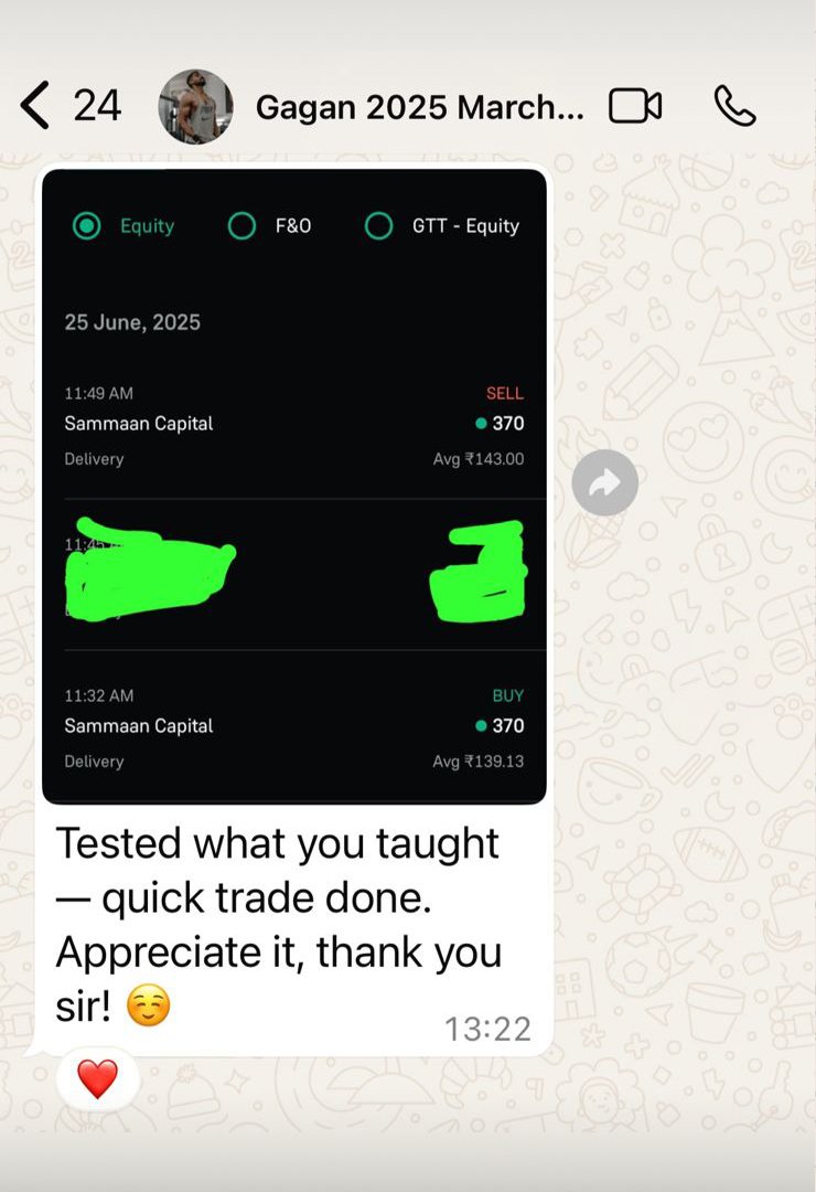 Before this mentorship, I was stuck in a cycle of random trades and losses. After joining, I finally learned how to approach the market with a plan and discipline. The content was detailed yet easy to follow, and the focus on risk management was a game-changer. I now trade with confidence — all thanks to the clear and structured guidance.